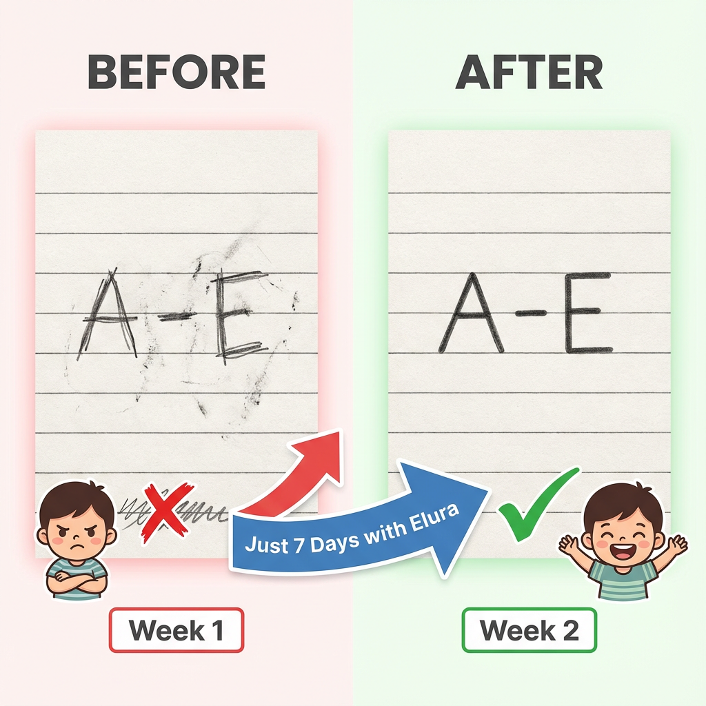 If you’re a parent frustrated with messy worksheets and wasted paper, Elura’s 3D grooved books change writing practice. Instead of confusion and scratched-out letters, guided grooves show kids how every stroke should feel. Magic ink lets them erase mistakes—so practice feels like play, and confidence grows with every page.